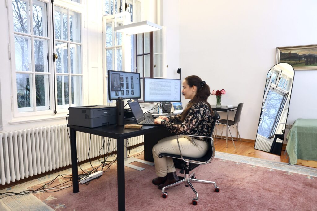 Sie arbeiten in einem hellen und geräumigen Büro in der Kaulbachvilla. Diese befindet sich in bester Lage und in unmittelbarer Nähe zu wichtigen Einrichtungen des Wissenschaftsstandortes München wie der Bayerischen Staatsbibliothek, der Ludwig-Maximilians-Universität oder des Bayerischen Hauptstaatsarchivs.